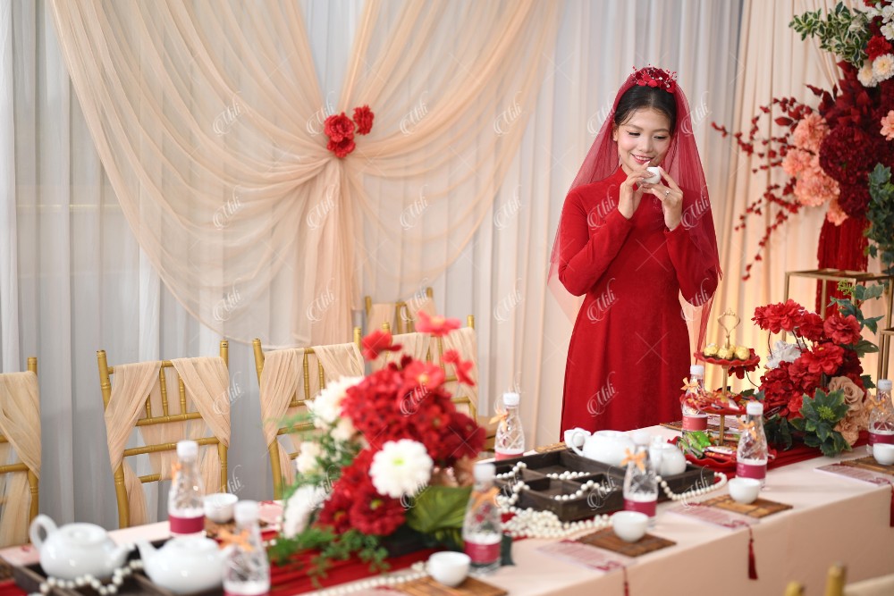 MILI WEDDING | DESIGN 004 là concept được phát triển từ sắc đỏ truyền thống – gam màu gắn liền với hỷ sự, tượng trưng cho may mắn, sự viên mãn và khởi đầu trọn vẹn trong ngày cưới.